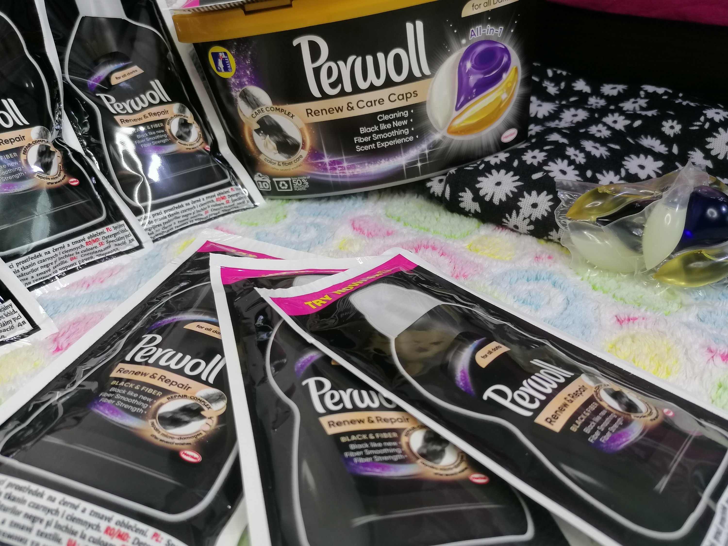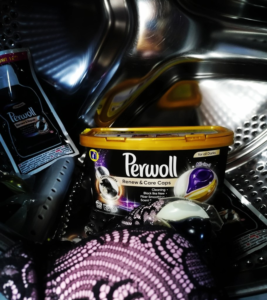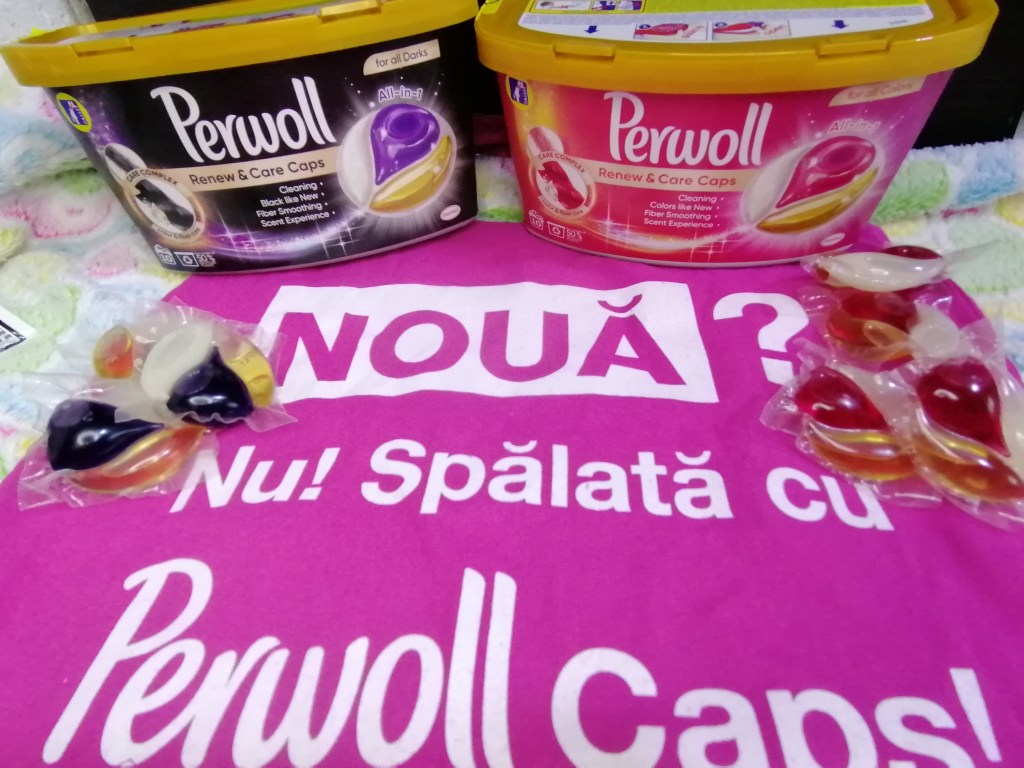 PERWOLL Renew&Care Caps, pentru rufe negre si închise la culoare.